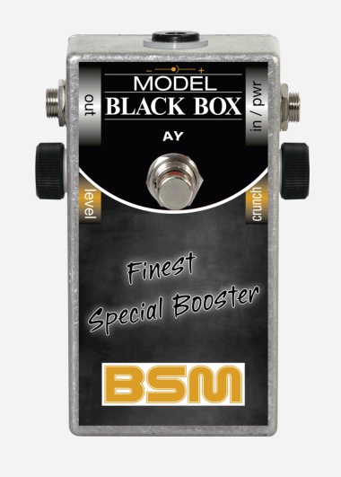 Here's the next strike from BSM: a powerful preamp/booster! 40 years after the release of „Back in Black“ Bernd Meiser took the idea of Angus Y. playing not only live but also in the studio with his Schaffer Vega wireless device for extra gain, brillliance and compression. Bernd did not make a simple copy of the circuit but came along with his own ideas to realize the functions. It is designed to hit the high treble input of a British style amp with medium output pickups hard. What came out is a real monster, working from 9 to 18 volts.