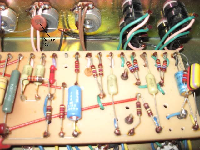 During the years, two slightly different versions of the Major lead series (there are also Major models for bass and PA purposes) had been released, the difference was only about one single component, a treble bypass capacitor, soldered between in- and output of the volume pot. In comparison to the 50 and 100 watt Marshall models of this time, this capacitor was small, similar to the ones used on the "Bright Switch" on many Fender amps. Later on, the Major received the same bypass cap like the 100 watt Marshall amps. The reason for this bypass cap was to keep the treble alive, when rolling back the volume. Because of this and depending on the volume, the upper highs were boosted notably. Other than on the Fender, Boogie, Dumble and some other amps, you could not switch off this boost. The Major amps with the treble bypass cap are called "Bright Volume" (BV), this amps did not show up until early/mid 1972 - the amps without the cap are called "Neutral Volume" (NV). After early/mid 1972, only the BV amps were produced. At the end of 1972, Ritchie switched over to this new BV version, its shining, bright tone is easy to identify.