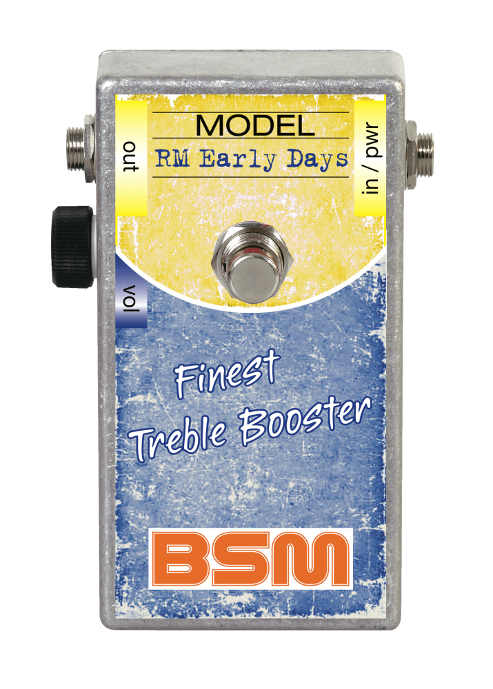 The RM is based on the British Range Master unit produced between 1965 and 1969, as used by Eric Clapton in John Mayall´s Bluesbreakers. Eric also used the booster when playing in the legendary group Cream. Its biting, powerful sound is clearly in evidence on the Bluesbreakers "Beano" album. Blues rocker Rory Gallagher, Glam rocker Mark Bolan, Heavy Rock pioneer Tony Iommi and Brian May from Queen were also heavy users of the original Range Master unit. The RM Early Days is the result of many customers´ demands, looking for the early RM sound. The RM Early Days is loaded with the same highly selected OC44 transistor, used for the famous stock RM model. Only the passive circuit has small differences to the stock RM unit. Therefore the RM Early Days sounds a little clearer and brighter in treble and tighter in the bass-response, compared to the stock RM. It's a fine machine for a brilliant classic rock tone. The booster is true bypass and can be powered only by battery.