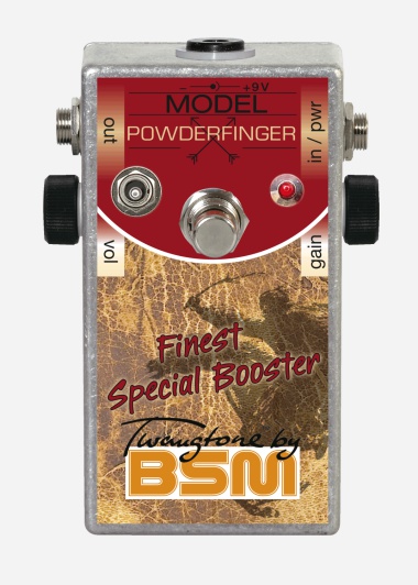 Manufactured in the framework of the „Twangtone by BSM“-line, the Powderfinger steps up to enable you to get that often acclaimed but seldom achieved guitar sound of Neil Young. Fully appreciating that the setup that Neil Young has put together for himself over the years may be unpractical and/or impossible to realize for most other guitar players, BSM has developed a pedal that puts every guitarist in the position to approach that Neil-Young-sound without having to call on a permanently fully cranked Fender Tweed Deluxe Amp.